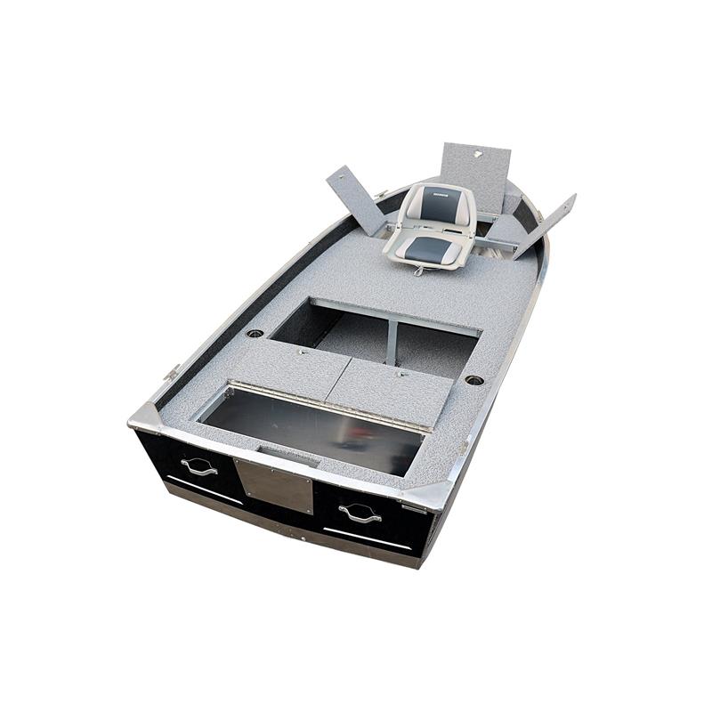 Das kleinere der beiden FISH BASS-Modelle verfügt über acht Stauräume. Die Vinyl- und Teppichabdeckung reduziert den Lärm erheblich und ist daher ideal für Süßwasser-Raubtiere. Der flache Boden und der Freibord sorgen für den Komfort des Anglers.