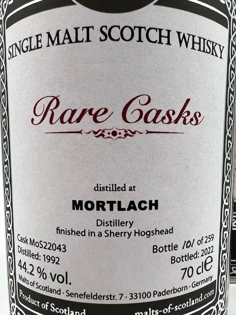 Mortlach ist die älteste Brennerei in Dufftown, dem Zentrum der Speyside. 1823 wurde sie am Ufer des Dullon gegründet, bezieht ihr Wasser aber aus den Conval Hills. Ihr Whisky wird in einem speziellen Verfahren mit sechs Stills , von denen eine den schönen Namen “ wee witchy”, kleine Hexe, trägt, destilliert.