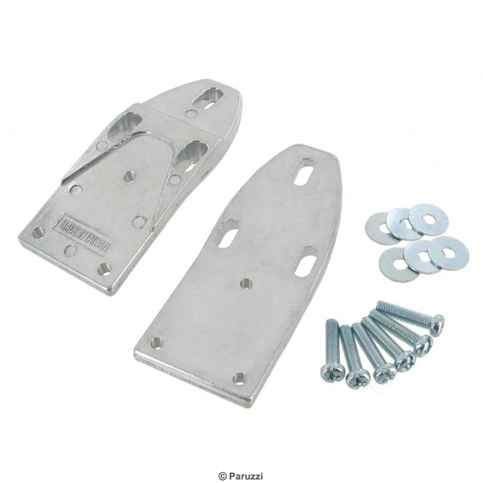 In den heißen Sommermonaten muss der Motor des Volkswagen Beetle einiges aushalten. Um eine Überhitzung zu vermeiden, gibt es viele komplizierte Lösungen, aber man kann dem Motor auch auf eine sehr sparsame und effiziente Weise mehr Kühlung verschaffen. Am einfachsten ist es, dafür zu sorgen, dass der Motordeckel oben nicht ganz schließt, so dass der Wind ungehindert in den Motorraum gelangen kann. Der Kühlungssatz besteht aus zwei Aluminiumadaptern, die zwischen den Scharnieren angebracht werden, die den Deckel oben offen halten.