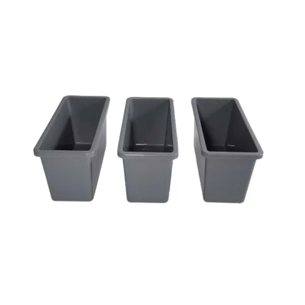 - 3 × Zusatzschalen: oben 210 x 95 mm, unten 185 x 70 mm, Höhe 110 mm
