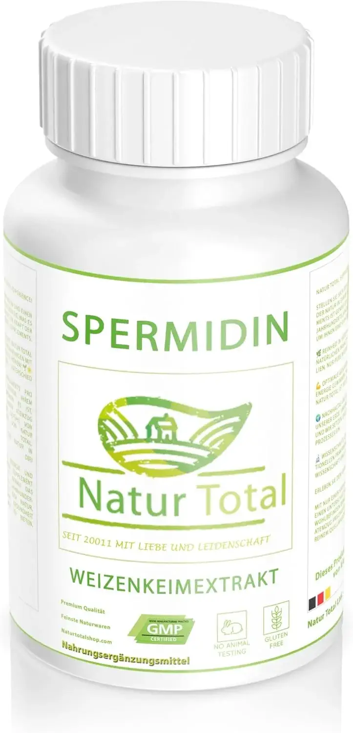 - SPERMIDIN-KAPSELN VON NATUR TOTAL sind ein Premium-Nahrungsergänzungsmittel, basierend auf natürlichen Weizenkeimextrakten mit einem optimalen Spermidin-Gehalt.