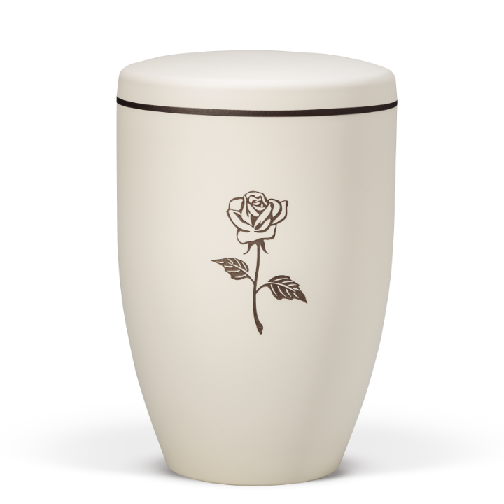 Naturstoffurne, Beige Velours – Tampondruck – Deckel brauner Rand, Motiv: Rose