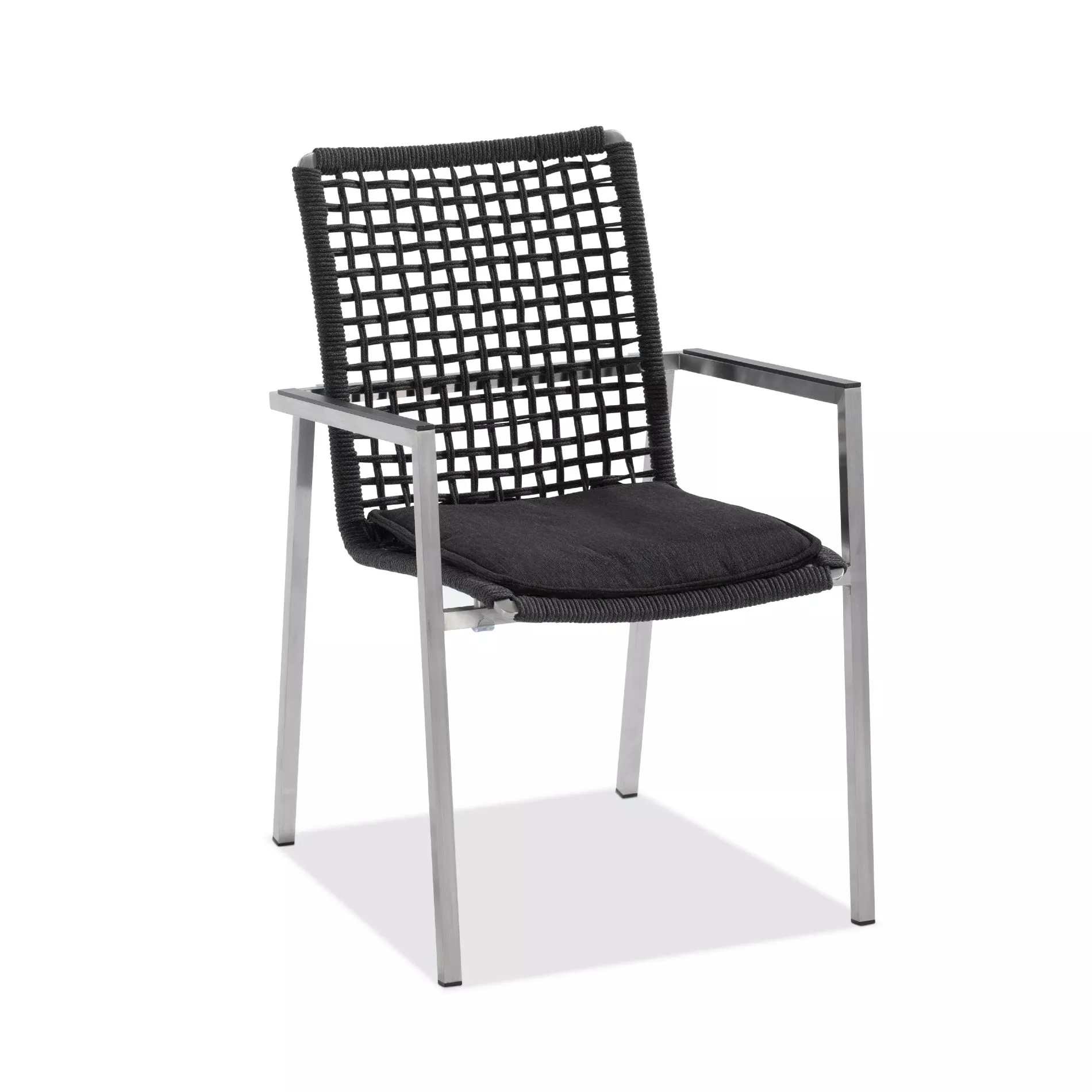 Luftige Optik – stabiles Gestell. Der Gartenstuhl “Sines” der Marke Niehoff präsentiert spannende Kontraste! Das geradlinige Gestell aus Edelstahl wird mit einer durchgehenden Sitzschale kombiniert. Die offene Kordelflechtung ist ein attraktiver Blickfang und zeigt, dass auch dunkle Farbtöne sommerliche Leichtigkeit auf die Terrasse bringen. Ist “Sines” nicht in Gebrauch, lässt sich der bequeme Gartensessel platzsparend stapeln. Freuen Sie sich auf einen Sommer mit “Sines”!
