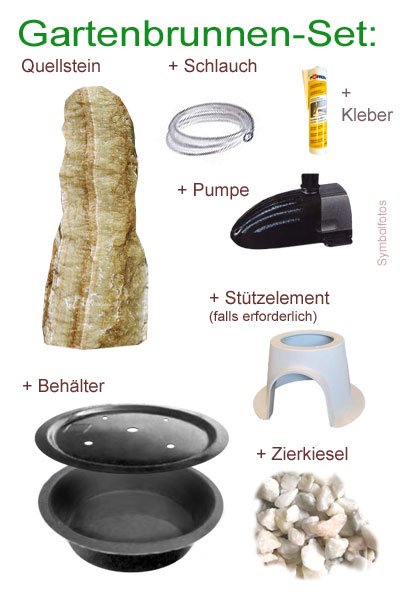 Sie können diesen Quellstein auch einfach als Gartenbrunnen Komplettset zum Preis von € 741,– bestellen. (Wählen Sie hierzu einfach oben die Option im dropdown Menü)