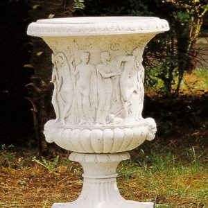 Dieses Pflanzengefäß ist im antiken Stil gefertigt und könnte aus einer Tempelanlage stammen. Es ist reich verzieht und eignet sich zum Bepflanzen oder als Dekoration. Das Material besteht aus Terracotta.