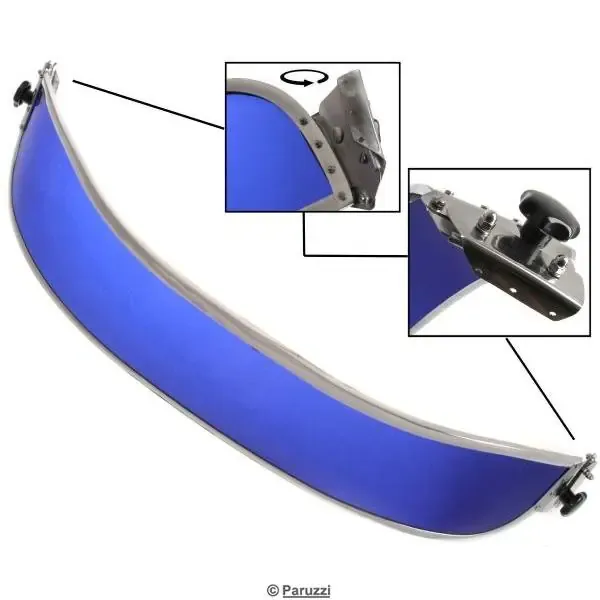 Dieser Sonnenschutz ist der Vorgänger des mittlerweile serienmäßig in jede Windschutzscheibe integrierten Sonnenschutzes. Es handelt sich um eine Reproduktion dessen, was ursprünglich geliefert wurde, das Design wurde jedoch in vielerlei Hinsicht verbessert. Der Rahmen besteht nun aus Aluminium und die Befestigungspunkte aus Edelstahl, einem Material, das eine lange Lebensdauer garantiert.
