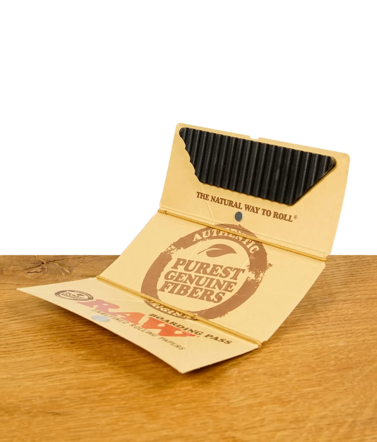 Das problemlose Raucherlebnis unterwegs mit dem RAW Boarding Pass. Dieses kompakte Tool ist nicht nur ein stylischer Begleiter, sondern vereint mehrere Funktionen in einem. Der integrierte, geriffelte "Breaker"-Stil-Grinder zerkleinert deine Kräuter mühelos, während das selbst aufklappende Rolltablett und das Cradle-Design für minimalen Kräuterverlust sorgen. Perfekt für alle, die auch unterwegs nicht auf ihre RAW-Qualität verzichten wollen.
