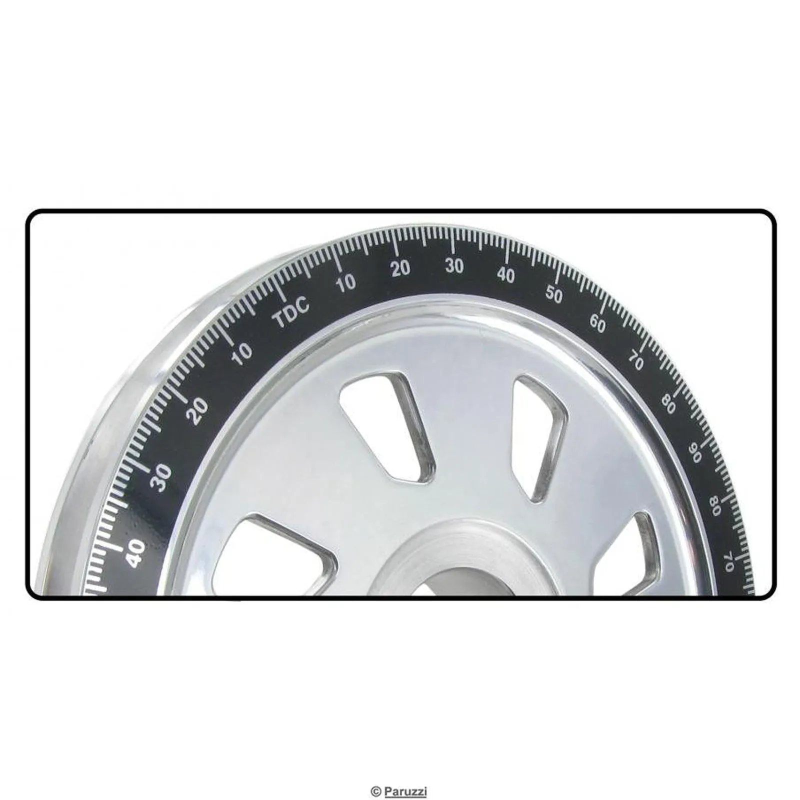 Das Gewicht ist viel geringer, was dazu beiträgt, die Motorleistung zu erhöhen. Diese Riemenscheibe hat einen Durchmesser von 170 mm , die nur bei Motoren mit 1200 und 1300 ccm verwendet wurden. Die Motoren mit 1500 und 1600 ccm waren mit einer 177 mm Riemenscheibe ausgestattet, um eine höhere Kühlleistung im Verhältnis zur größeren Motorleistung zu erzielen. Eine Riemenscheibe mit geringerem Gewicht und kleinerem Durchmesser ist der Schlüssel, um die maximale Motorleistung aus Ihrem Motor herauszuholen. Deshalb werden diese 170 mm-Riemenscheiben oft bei Motoren mit 1500 und 1600 ccm verwendet. Es gibt jedoch einen Nachteil; die Kühlkapazität wird durch den kleineren Durchmesser reduziert. So dass sie bei 1500 und 1600 ccm Motoren nicht zur Anwendung kamen.