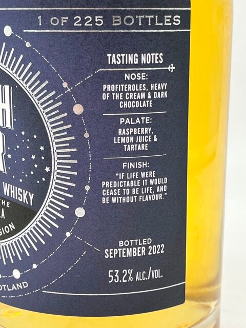 Stil der Destillerie: frisch, blumig und fruchtig. Sehr ausgewogen und komplex, mit Äpfeln und Birnen, einem Hauch von Gewürzen, Nüssen und einer deutlichen Sherrynote.