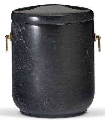 Runde Marmorurne in Schwarz zylindrisch, flacher Deckel