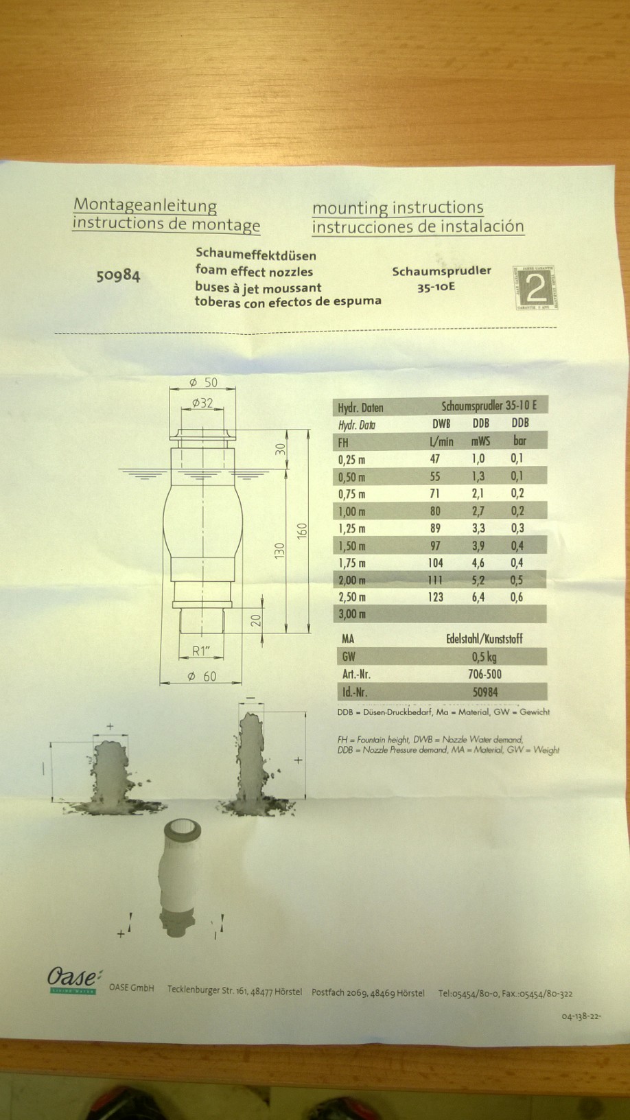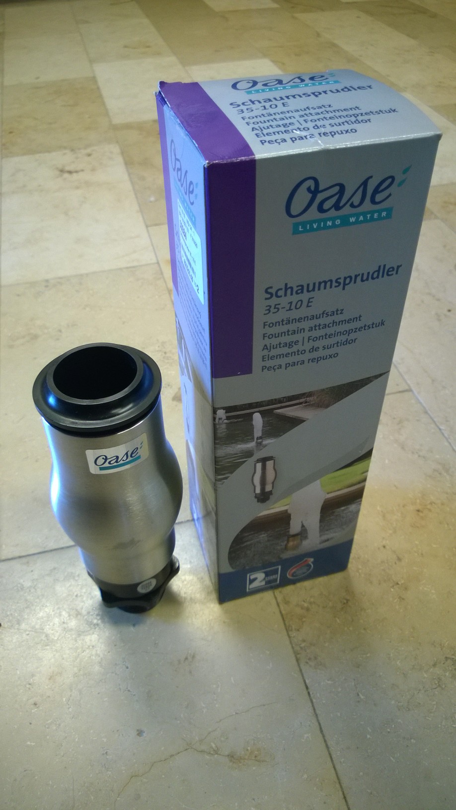 Der OASE Schaumsprudler 35-10 E ist eine Luft-Wasser-Schaumdüse. Die 1″-Aufsatz-Düse aus Edelstahl kann wasserstandsunabhängig eingesetzt werden. Sie eignet sich besonders gut für Flachwasserzonen und kleinere Gartenteiche. Durch die intensive Verwirbelung mit Luft wird dem Wasser reichlich Sauerstoff zugeführt. Der OASE Schaumsprudler 35-10 E ist geeignet für OASE Aquarius DFountainsetpumpen 4000, 6000, 8000 und 12000. Die Höhe des Wasserspiels variiert je nach Pumpenleistung (z.B. Aquarius 4000- Höhe 60 cm). Material: Edelstahl