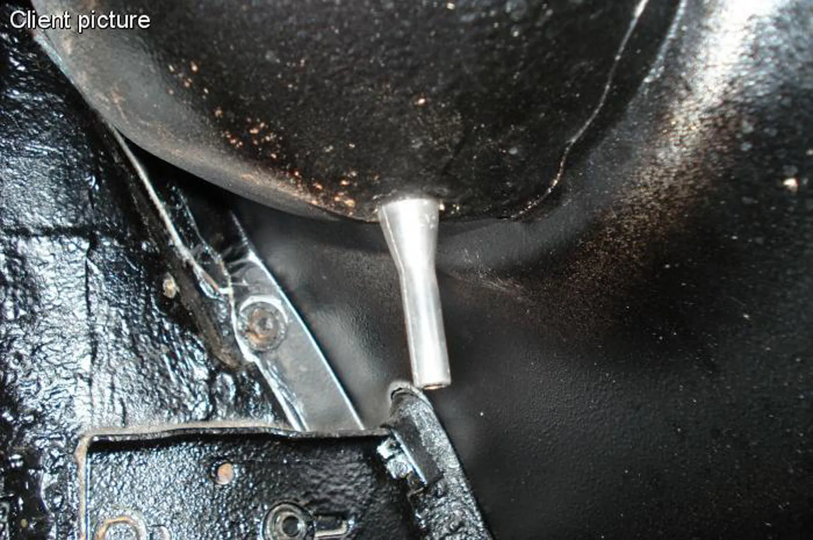 Fehlen diese Ablauftüllen, kann das Spritzwasser der Reifen eindringen, was zu einem Nährboden für Rost wird.