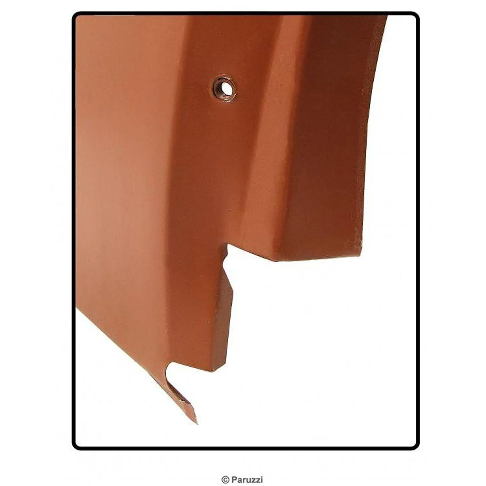 Diese Verkleidung wurde ursprünglich für in Brasilien hergestellte Fahrzeuge entwickelt, wo der Glasfalz von dem der deutschen Modelle abweicht. Wenn Sie die Platte für ein deutsches Auto verwenden wollen, können Sie den oberen Teil nicht verwenden. In vielen Fällen werden Sie es auch nicht brauchen, und es ist ein perfektes Restaurationsstück für Limousinen und Cabriolets.