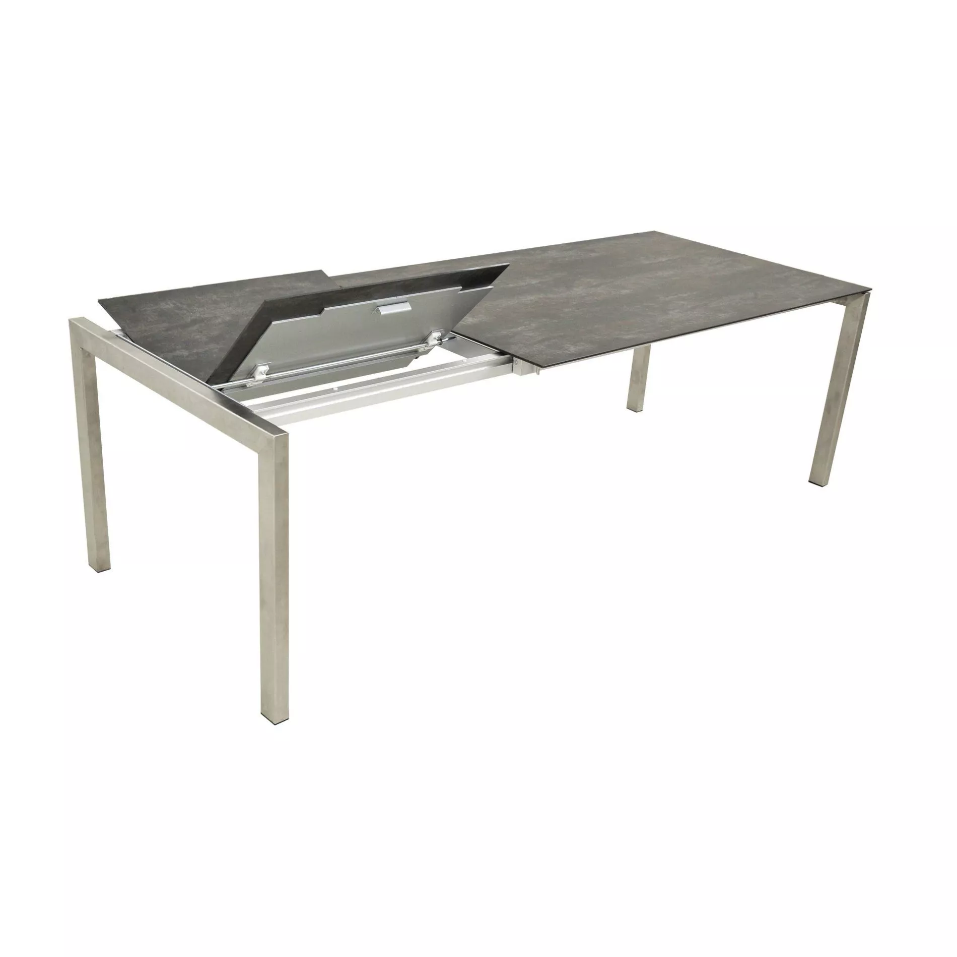 Qualität und Stil – das verspricht der Ausziehtisch “Ventura“ der Marke SIT Mobilia. Das variable Tischsystem „Ventura” bietet Ihnen die Möglichkeit, das moderne Edelstahl-Gestell mit einer Dekton-Tischplatte (8 mm) zu kombinieren. Der Tisch ist dank einer 70 cm großen Klappeinlage seitlich verlängerbar, es gibt ihn in den Größen: 140/210×95 cm, 160/230×95 cm, 180/250×95 cm und 210/280×95 cm. Freuen Sie sich auf ein stilvolles Essen unter freiem Himmel! Übrigens finden Sie weitere Tischvarianten, z. B. mit Keramik- oder HPL-Platte ebenfalls in unserem Shop.