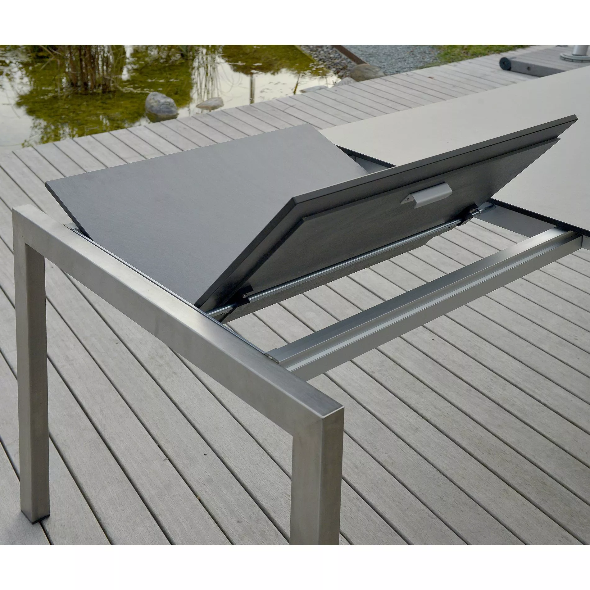 Gartenstühle mit der passenden Gestellfarbe (edelstahlfarben oder anthrazitgrau) harmonieren natürlich besonders gut mit dem Gartentisch. In der Leiste “Dazu passt” haben wir einige Vorschläge verlinkt. Grundsätzlich schenkt Ihnen der Tisch große Gestaltungsfreiheit, da er zu vielen Designs passt.