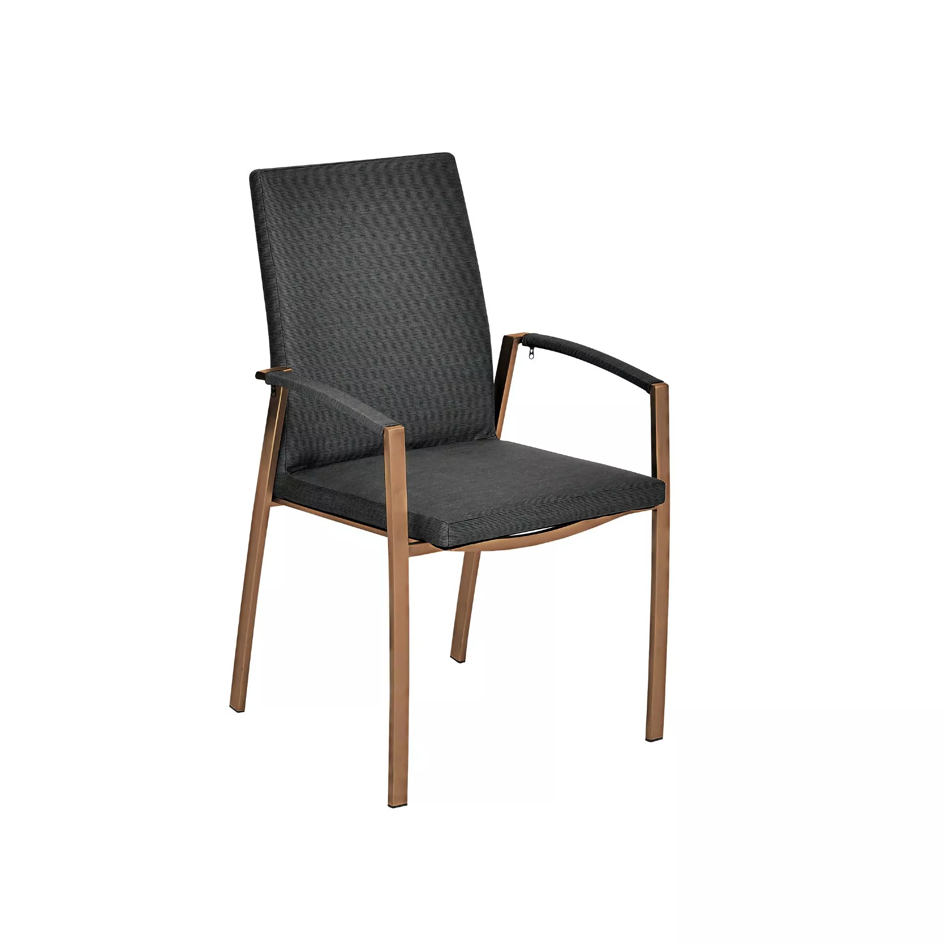 Bequem kann so schön sein. “Talisma Cobre” von SIT Mobilia ist ein gemütlich gepolsterter Stapelsessel, der auch optisch begeistert. Das Kupfer verchromte Gestell aus Edelstahl hat eine glänzenden Oberfläche, die – je nach Lichteinfall – auch mal feurig schimmert. Die dunkle Sitzfläche ist ein toller Kontrast zum Gestell. Der exklusive Gartensessel hat schnelltrocknenden Schaumstoff im Innern – perfekt für den Einsatz unter freiem Himmel.