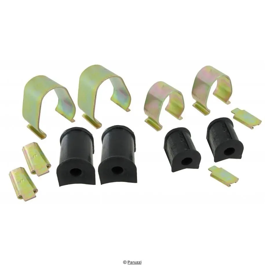 Die Gummis, in denen der Stabilisator gelagert ist, haben mehrere Funktionen. Erstens dienen sie als flexibler Drehpunkt und zweitens absorbieren sie Vibrationen der Federung und verbessern so den Komfort im Auto. Um das Handling und die Fahreigenschaften eines Autos zu verändern, sieht man oft, dass der Besitzer einen steiferen Stabilisator in Kombination mit Urethan-Gummi einbaut. Diese härteren Gummis reduzieren den Federungskomfort, sorgen aber für ein strafferes, direkteres Handling.