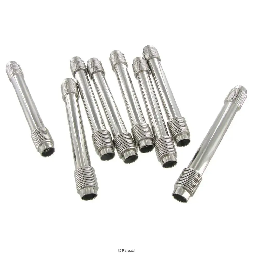 Die Stößelschutzrohre sind sehr oft Undicht und müssen gewechselt werden. Diese sind zwischen Motorblock und Zylinderkopf und umgeben die Stößelstangen. In diesen Rohren läuft das Motoröl zurück welches der Ventiltrieb im Zylinderkopf zur Schmierung benötigt. Diese sind gelängt und werden beim Zusammenbau gestaucht. Man kann diese nicht durch auseinanderziehen zweimal verwenden! Das Erneuern der Dichtungen ist dabei sehr wichtig! Im Dichtungssatz sind diese Dichtungen ebenfalls enthalten. TIP: Achten Sie beim Zusammenbau darauf, dass die Gewinde der Stehbolzen einwandfrei gesäubert und geschmiert sind, sonst liegen unterschiedliche Drehmomente an und der Zylinderkopf wird undicht.