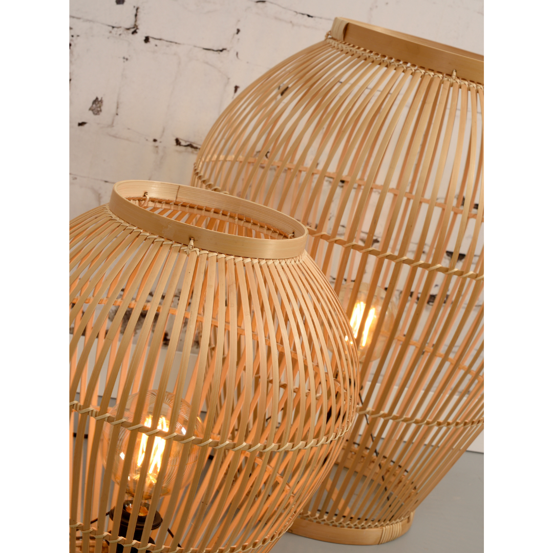 Die Stehlampe Tuvalu Bambus naturel von GOOD&MOJO verkörpert eine harmonische Mischung aus Nachhaltigkeit und Eleganz, maßgeschneidert für Haushalte, die sich einem umweltbewussten Leben verschrieben haben. Ihre Präsenz verleiht jedem Raum, sei es das Wohnzimmer oder das Schlafzimmer, einen Hauch von zeitgenössischem Flair und versprüht mit ihrem klassischen Design einen zeitlosen Charme. Die gefäßartige Silhouette der Tuvalu-Lampe sorgt für einen fesselnden Reiz und hebt die Atmosphäre deines Interieurs mit Raffinesse hervor. Diese unverwechselbare Leuchte wurde sorgfältig aus umweltfreundlichem Bambus gefertigt und ist in zwei Größen erhältlich. Sie bietet eine natürliche Farbpalette, die sich nahtlos in verschiedene Dekorthemen einfügt.