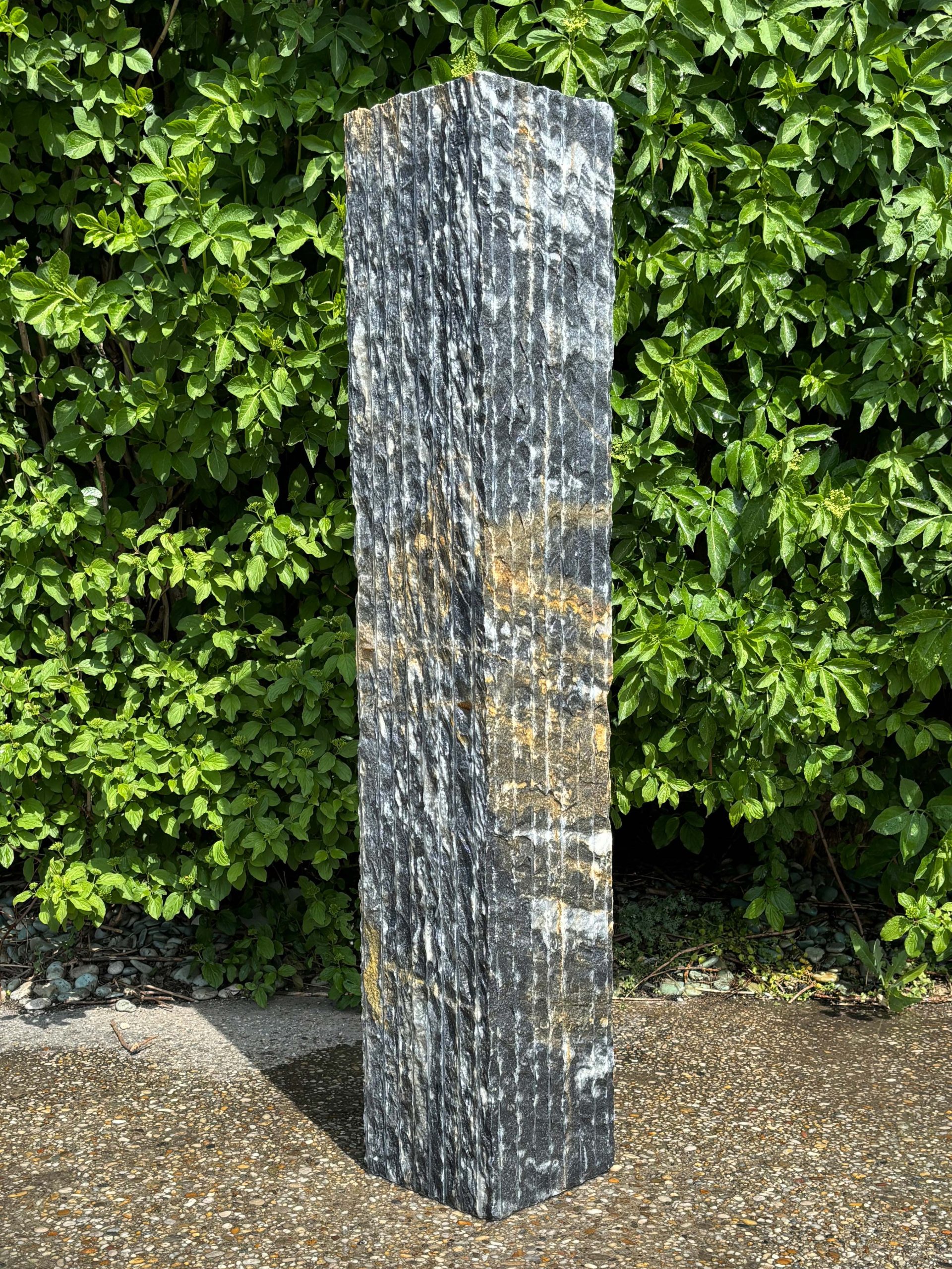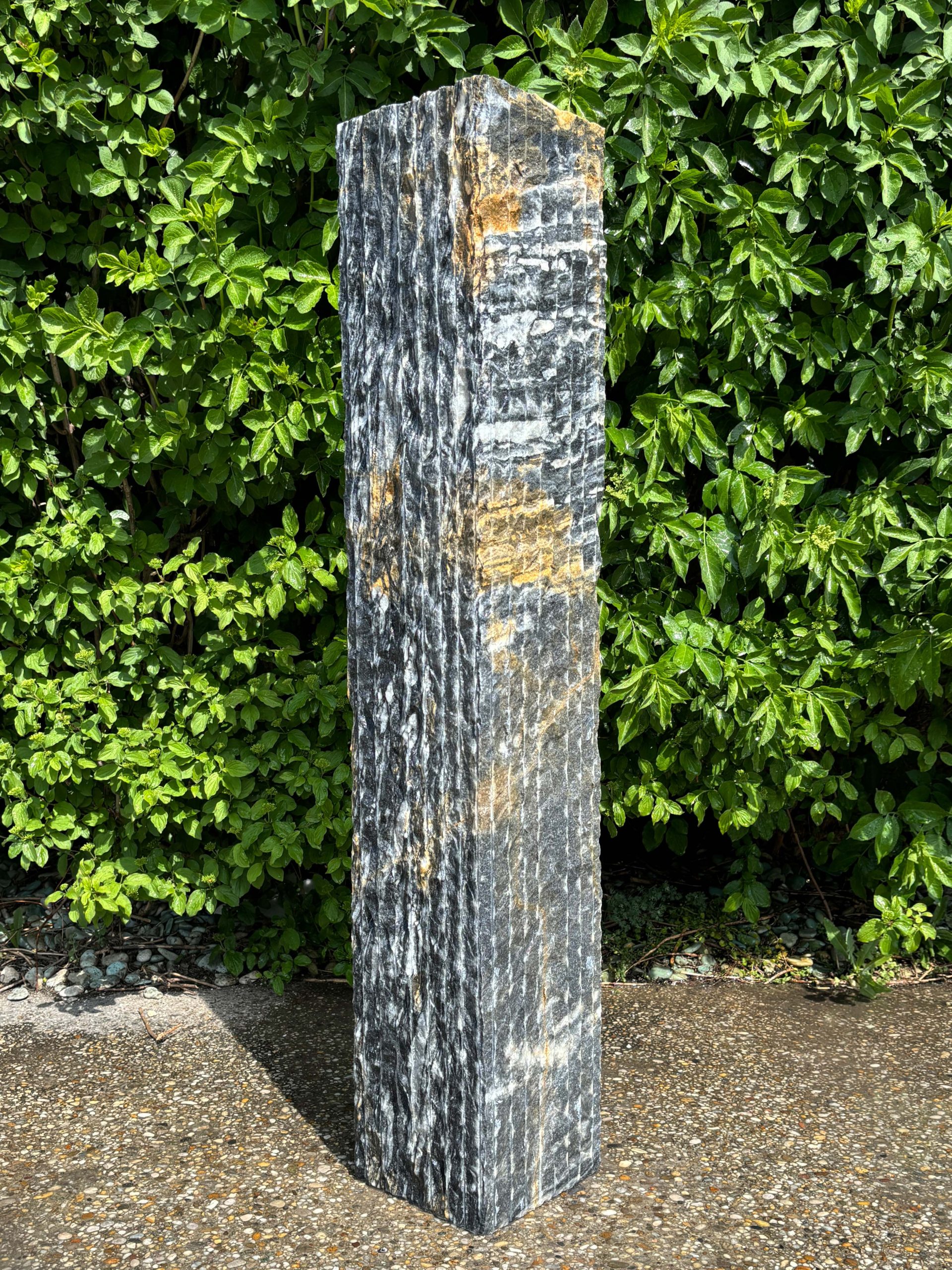 Dieser dunkelgraue bis schwarze Marmor mit seinen weißen Zeichnungen ist ein echter Blickfang und fügt sich perfekt in jedes Ambiente ein. Die felsige Stele vereint modernes Design mit rustikalem Stil.
