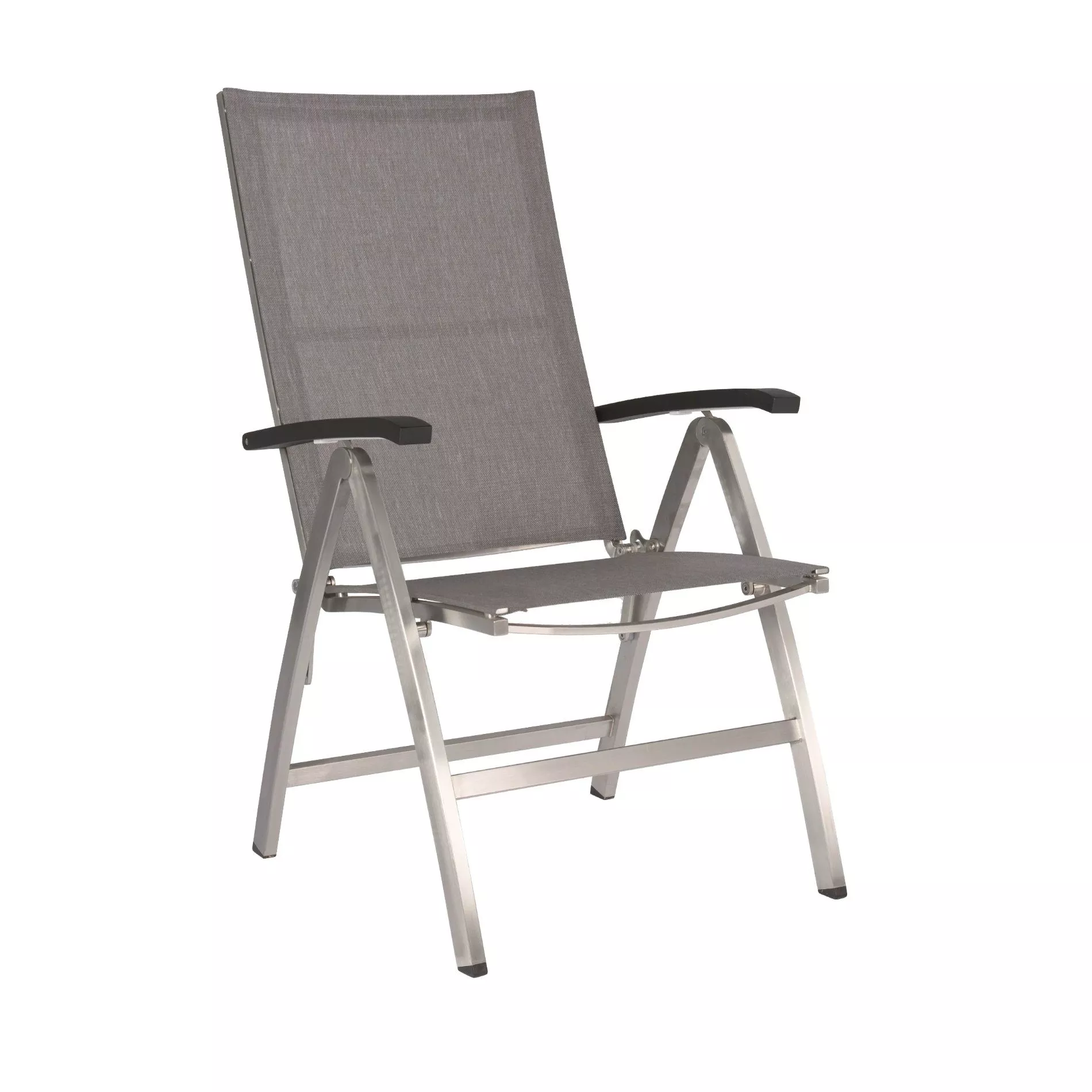 besitzt ein qualitativ hochwertiges Gestell aus Edelstahl, das sehr stabil und wetterbeständig ist. Hierzu wurde robustes, strapazierfähiges Textilgewebe als Bespannung kombiniert, damit der Sessel den Sommer über gut im Freien stehen bleiben kann. Das angenehme und atmungsaktive Textilgewebe sorgt für höchsten Sitzkomfort. Die Armlehnen aus Aluminium geben dem Gartenstuhl den letzten Schliff und sind auch optimal für den Außenbereich geeignet.