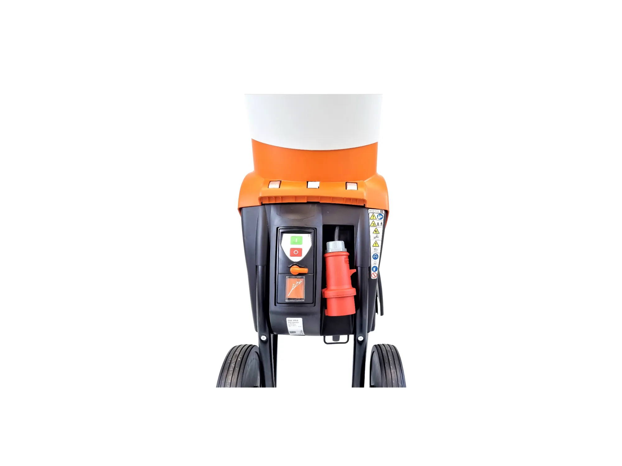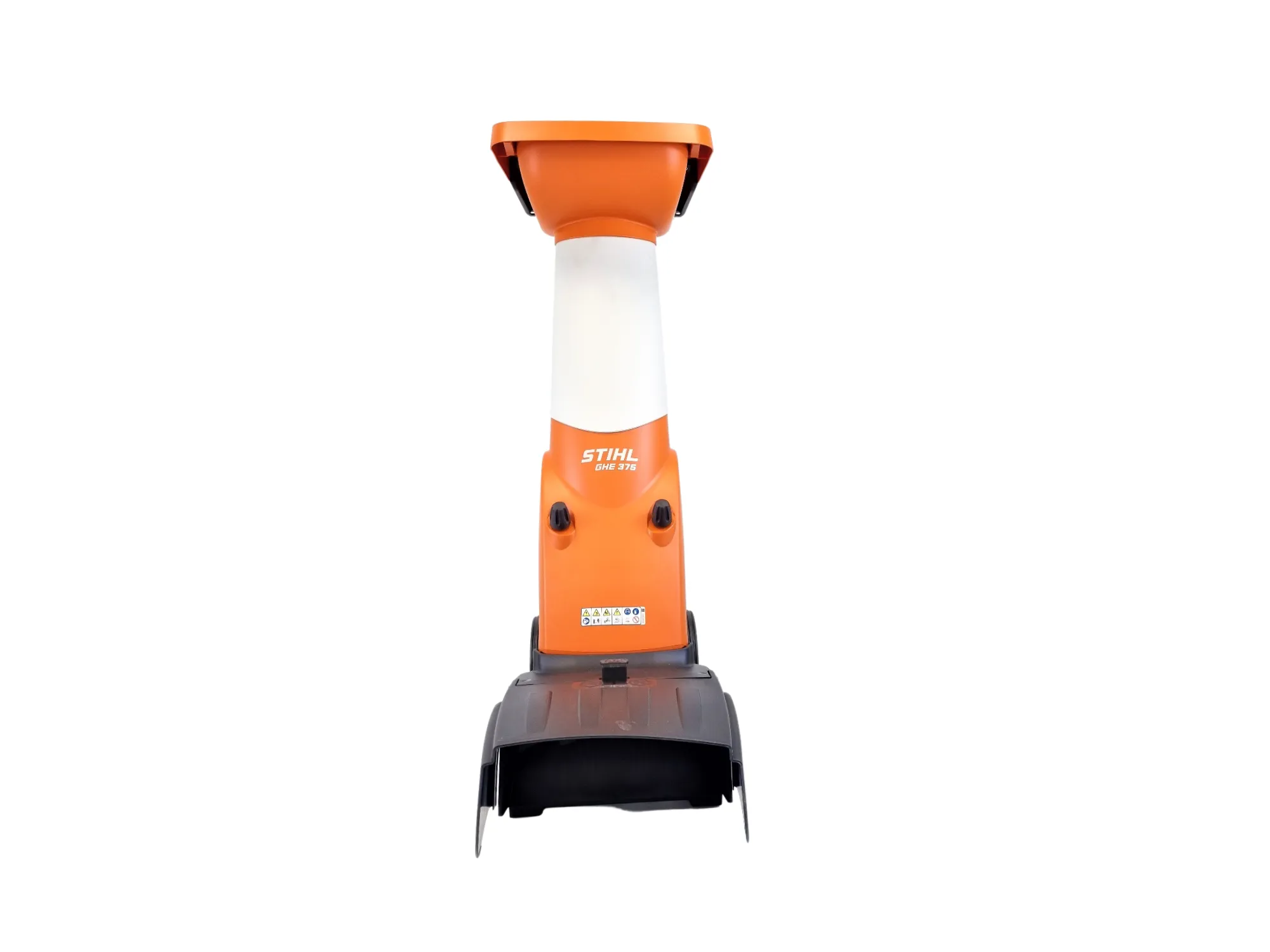 Der breite, lärmgedämmte Einfülltrichter des leichten elektrischen Gartenhäckslers GHE 375 zieht mühelos auch sperriges Schnittgut wie verzweigte Äste in das Messersystem mit Sandwichbauweise, das außerdem über Zusatzmesser und Reißnasen verfügt. Für die nötige Sicherheit sorgt der Sicherheitsverschluss, der ein ungewolltes Starten des Geräts beispielsweise während Reinigungs- oder Wartungsarbeiten verhindert. Das breite Fahrwerk des Elektro-Gartenhäckslers GHE 375 von STIHL vergrößert seine Standfestigkeit und die Transporträder machen ihn auch auf unebenem Terrain leichtgängig.