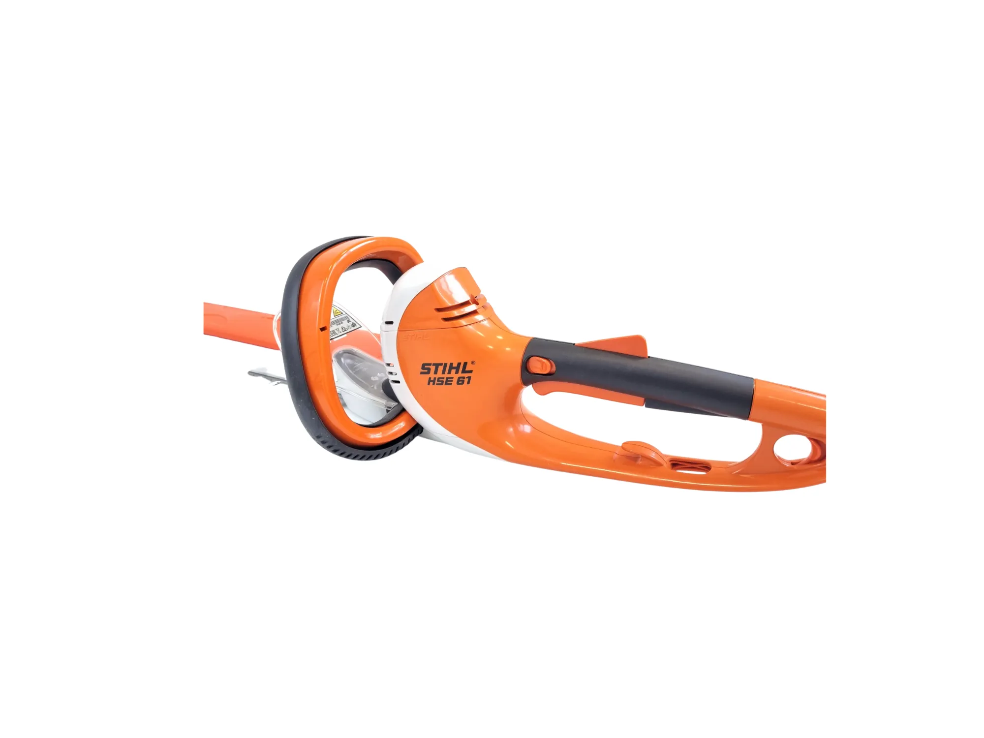 Die Elektro-Heckenschere STIHL HSE 61 eignet sich für Privatanwender für die Pflege Ihrer Hecken, von Buchsbäumen, Sträuchern im Garten und rund ums Haus. Die elektrische Heckenschere HSE 61 wiegt bei einer Schnittlänge von 50 cm nur 3,9 kg und ist dank des in fünf Positionen drehbaren Multifunktionsgriffs in allen Schneidpositionen sehr flexibel und komfortabel bedienbar. Durch das 3-fach-Schaltsystem können Sie die Reichweite der Heckenschere erhöhen, indem Sie einfach vom vorderen Schaltbügel zum hinteren Ende des Handgriffs umgreifen. Die einseitig geschliffenen Schneidmesser kürzen präzise auch dünne Zweige und Äste. Die lasergeschnittenen Messer haben gehärtete Schnittkanten. Dadurch sind sie besonders robust und bleiben lange scharf.