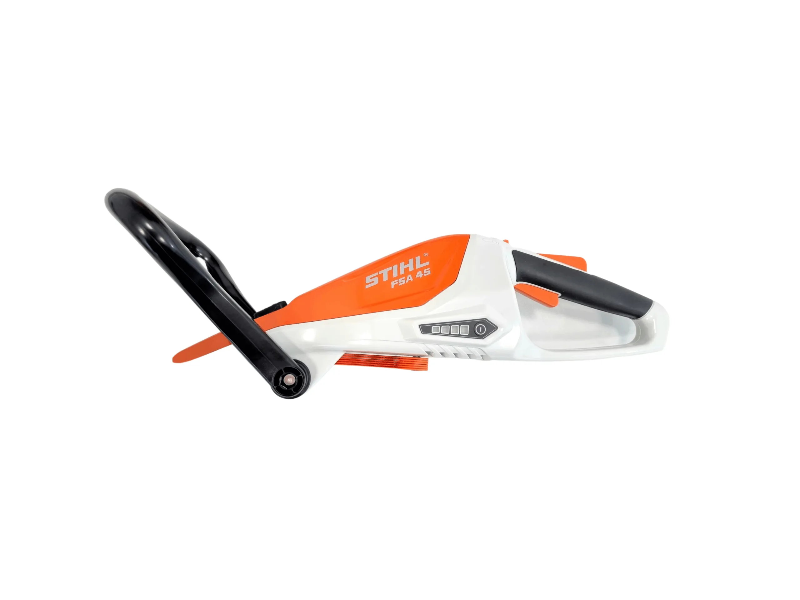 Die Motorsense STIHL FSA 45 ist mit einem Aktivierungsschlüssel ausgestattet. Dieser muss zum Betrieb in die Schlüsselaufnahme gesteckt werden. Für den Transport, die Wartung, Reparatur und Lagerung ist dieser zur Sicherheit abzuziehen. Bewahren Sie den Aktivierungsschlüssel außerhalb der Reichweite von Kindern auf.