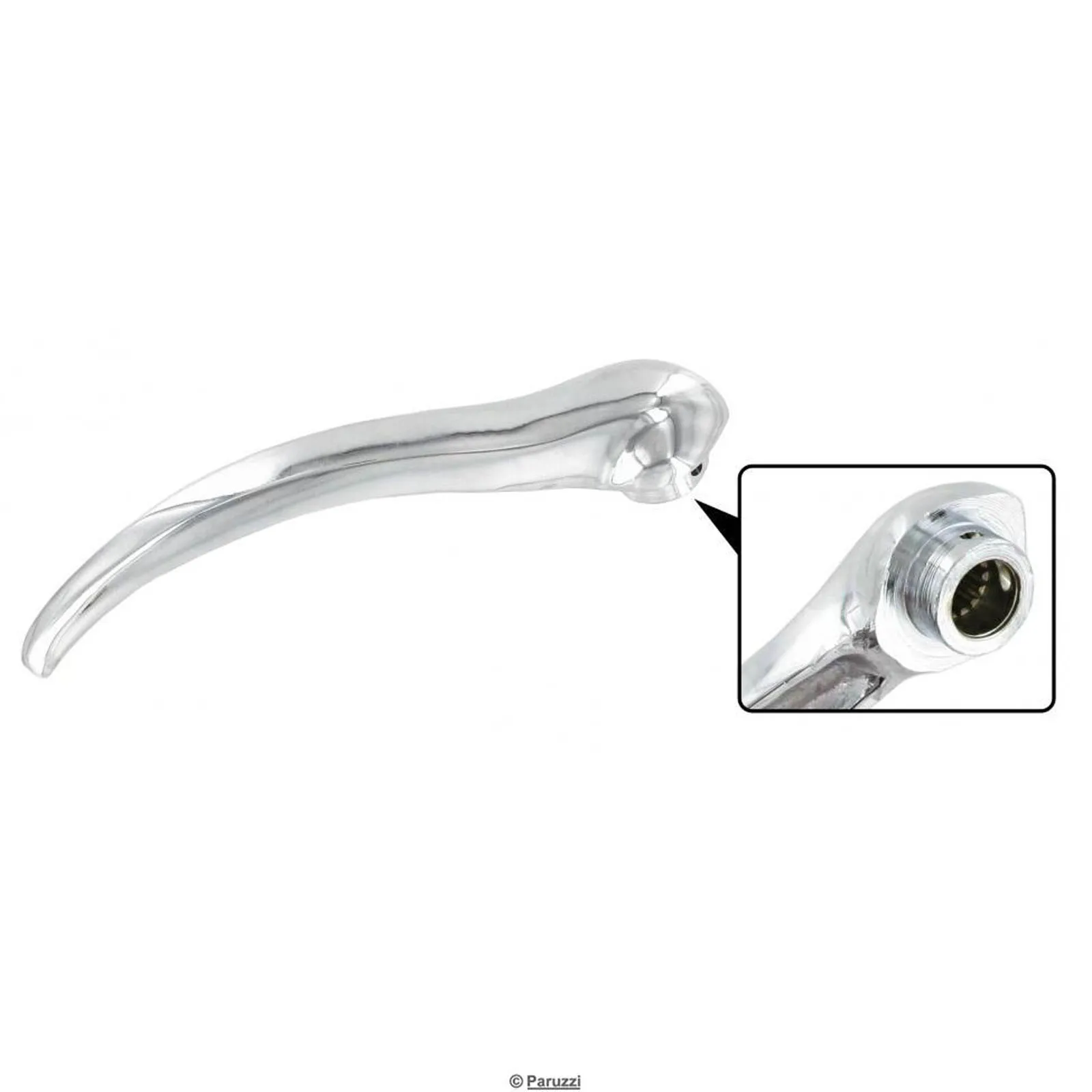 Dieser verchromte Verdeckgriff hat eine Doppelfunktion: Sie öffnen und schließen das Verdeck und durch Drehen des Griffs um eine Vierteldrehung wird das Verdeck im geschlossenen Zustand verriegelt.