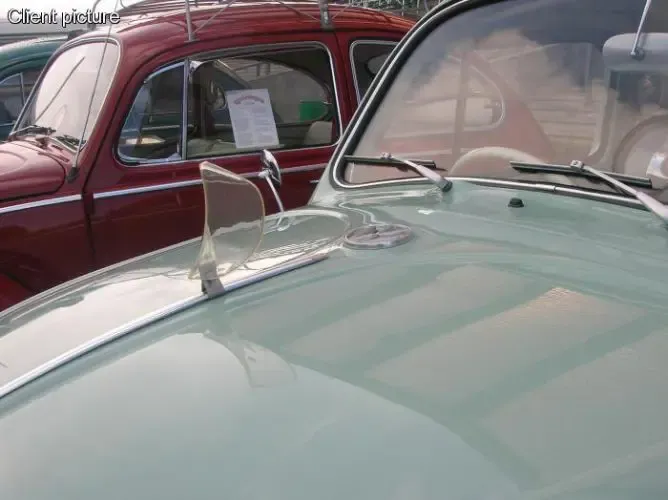 Der Wirbulator ist so ein authentisches Accessoire. Es wird an der Zierleiste der Frontklappe montiert und sorgt dafür, dass Schnee und Insekten nicht gegen die Windschutzscheibe fliegen. Das war früher sehr schön, denn die Scheibenwischer waren nicht besonders gut.